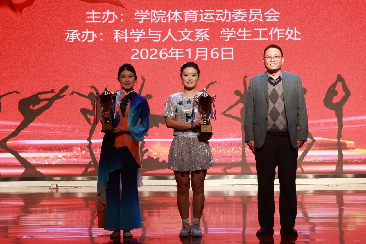 动感节拍点燃青春激情,飒爽舞姿彰显青年担当。1月6日,学院第十一届学生健美操舞蹈大赛在大学生活动中心举行。本次大赛以“砺青年担当,舞青春华章”为主题,由学院体委主办,科学与人文系、学生工作处承办,共有9支参赛队伍同台竞技。学院副院长、体委主任吕昌锋出席活动并颁奖。