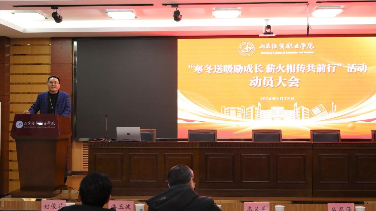 1月23日,学院召开2026年“寒冬送暖励成长 薪火相传共前行”活动动员大会,正式启动寒假困难学生走访及校友顺访工作。学院党委委员、副院长吕昌锋出席会议并作动员讲话,会议由学生工作处处长、院团委书记高义丰主持。