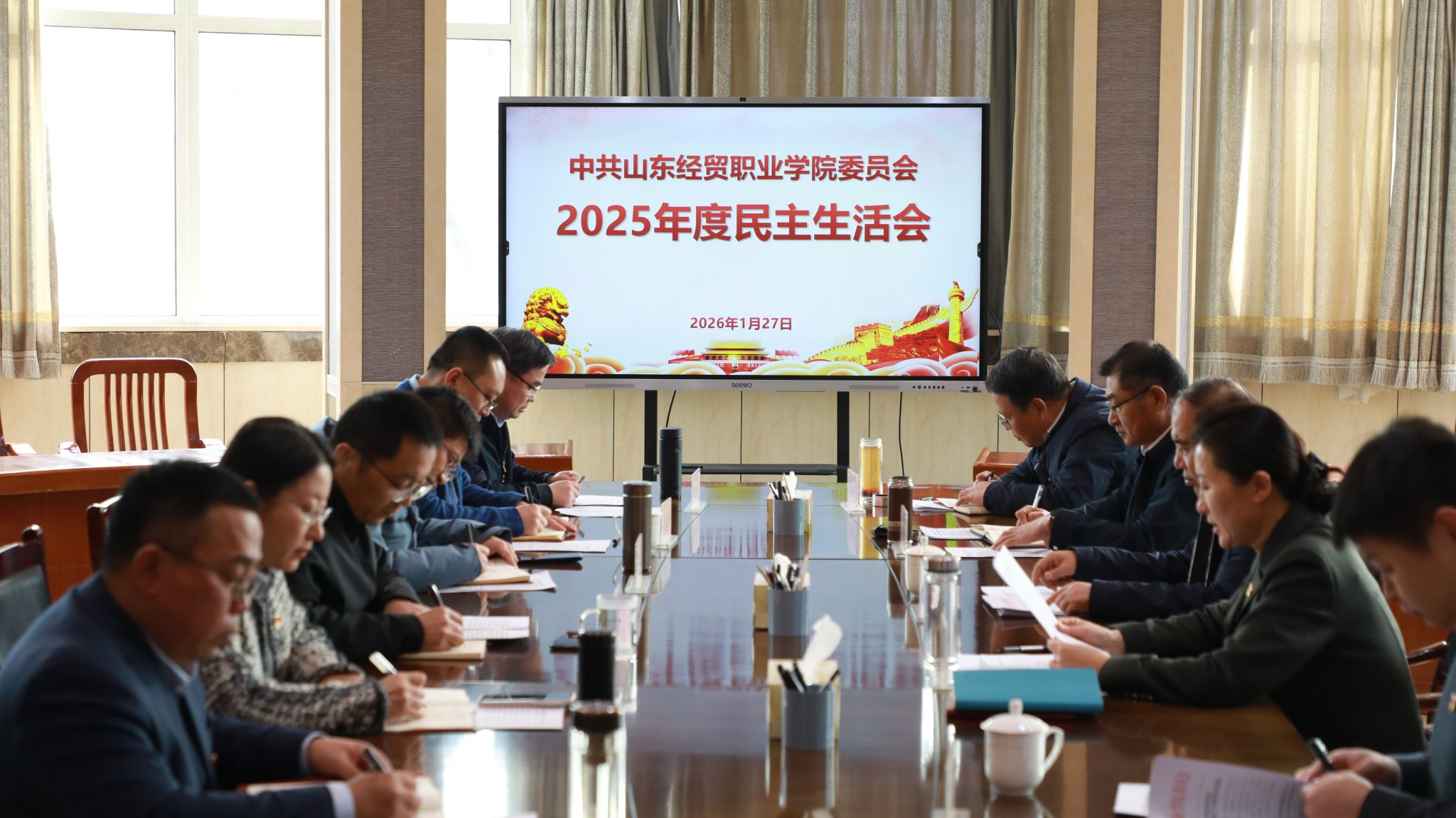 1月27日,学院党委召开2025年度民主生活会。省供销社党组副书记、监事会主任秦维强到会指导。会议由学院党委书记高志秀主持。