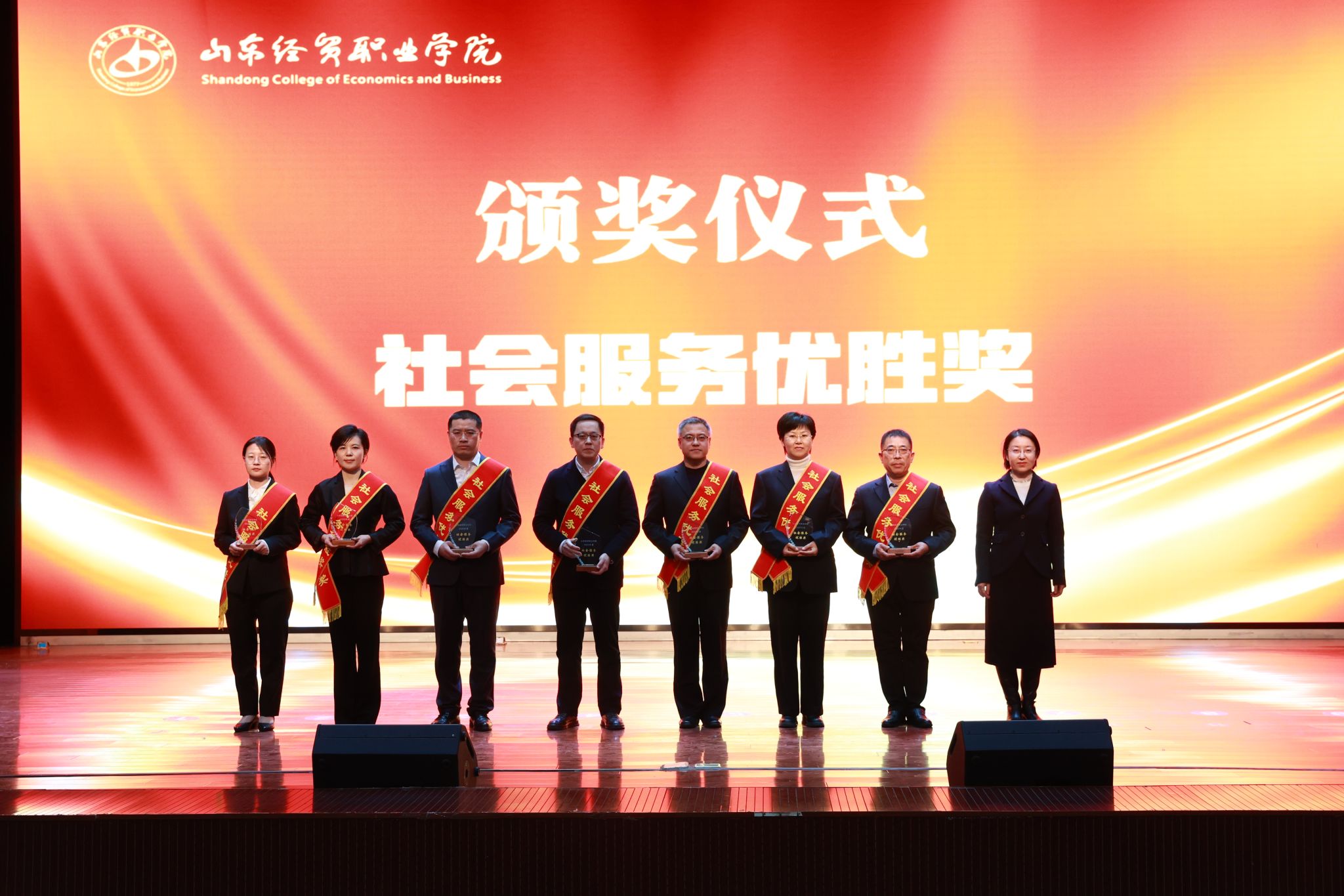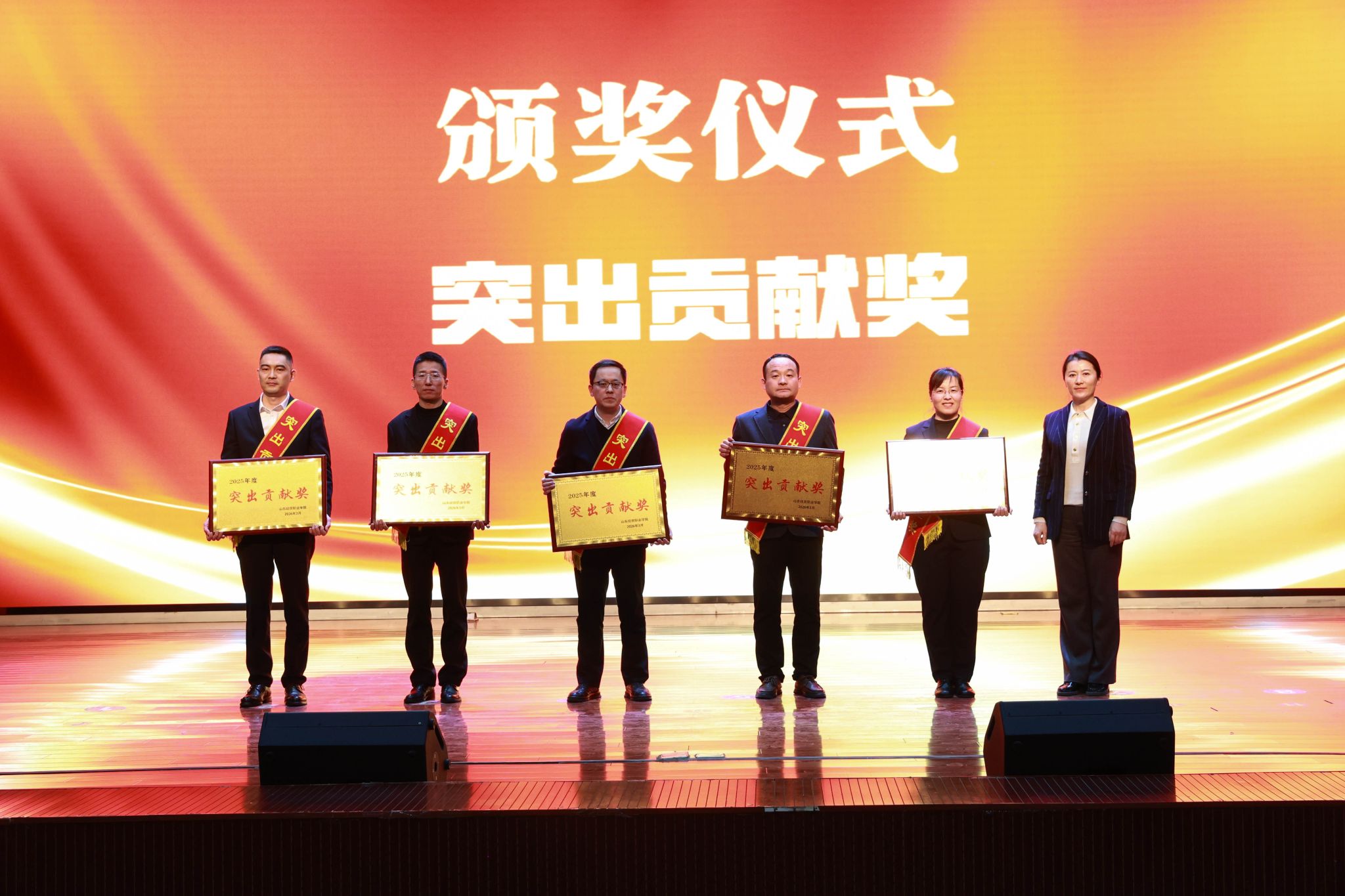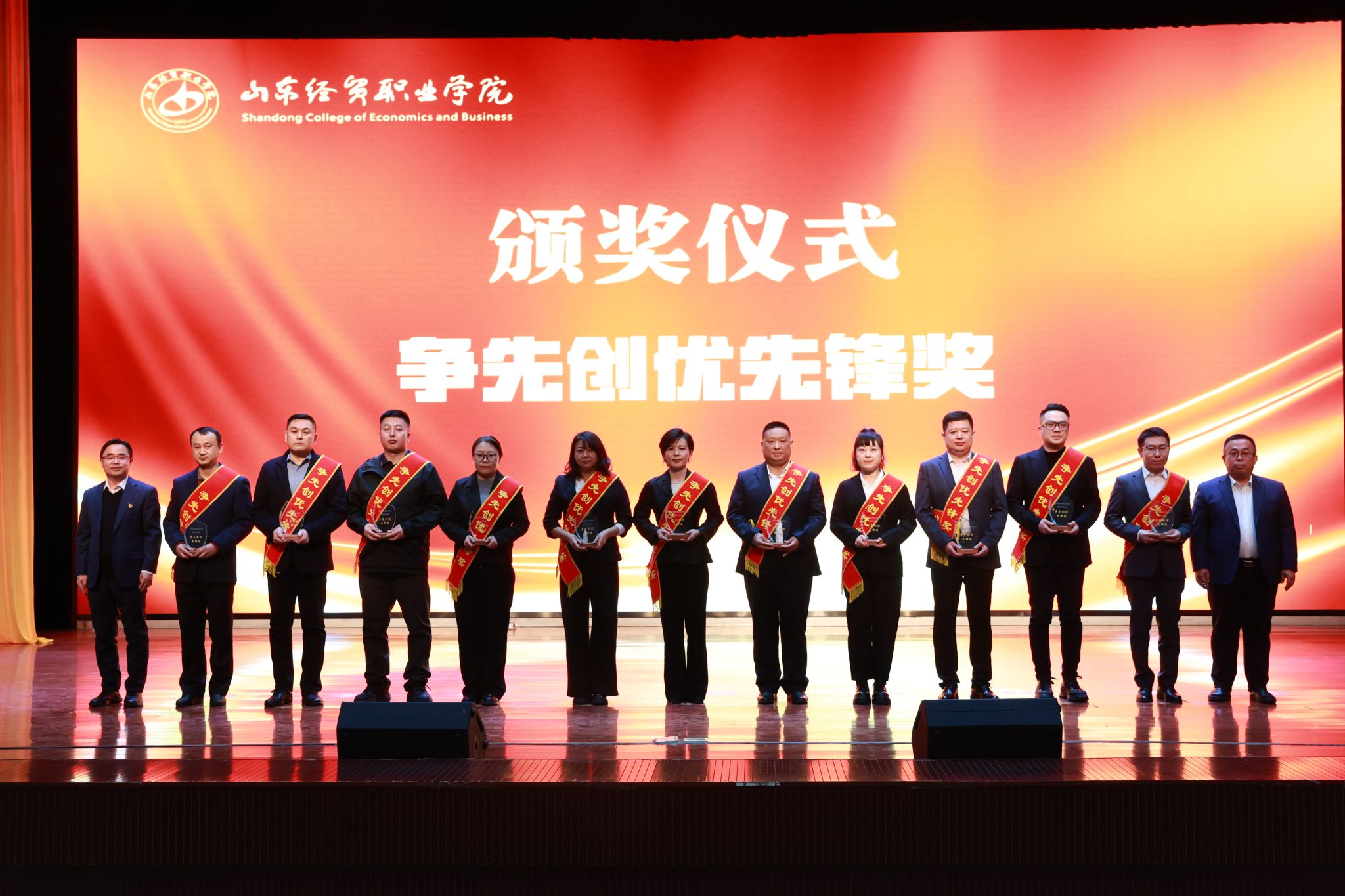 会议表彰了2025年度为学院高质量发展作出突出贡献的先进集体、团队和个人。学院领导为争先创优先锋奖、社会服务优胜奖、质量提升奖、综合考核奖和突出贡献奖的获奖单位及个人代表颁奖,充分肯定了他们的辛勤付出和卓越贡献。