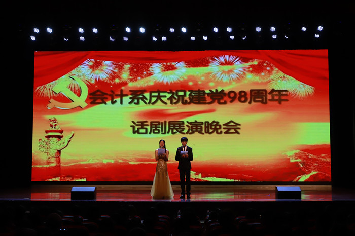 6月20日晚,会计系全体师生齐聚一堂,在学院礼堂隆重举办庆祝中国共产党建党98周年话剧展演晚会。