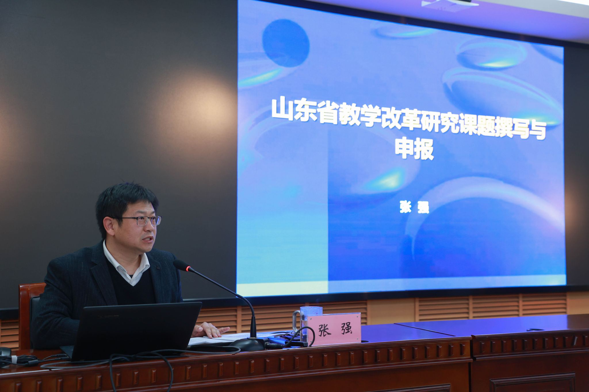 学院党委委员、副院长张强教授作《山东省教学改革研究课题撰写与申报》专题报告。报告围绕选题技巧强调五大原则,指出选题要贴合岗位职责、聚焦职教改革热点、兼具普适性与时代性、紧扣国家战略与教学规律,同时指明教改课题与教学成果奖的申报差异。针对申报书撰写,拆解各模块要点,明确文献梳理、内容贴合、创新点凝练、研究基础深耕等要求,并对撰写逻辑、概念使用等细节提出规范。