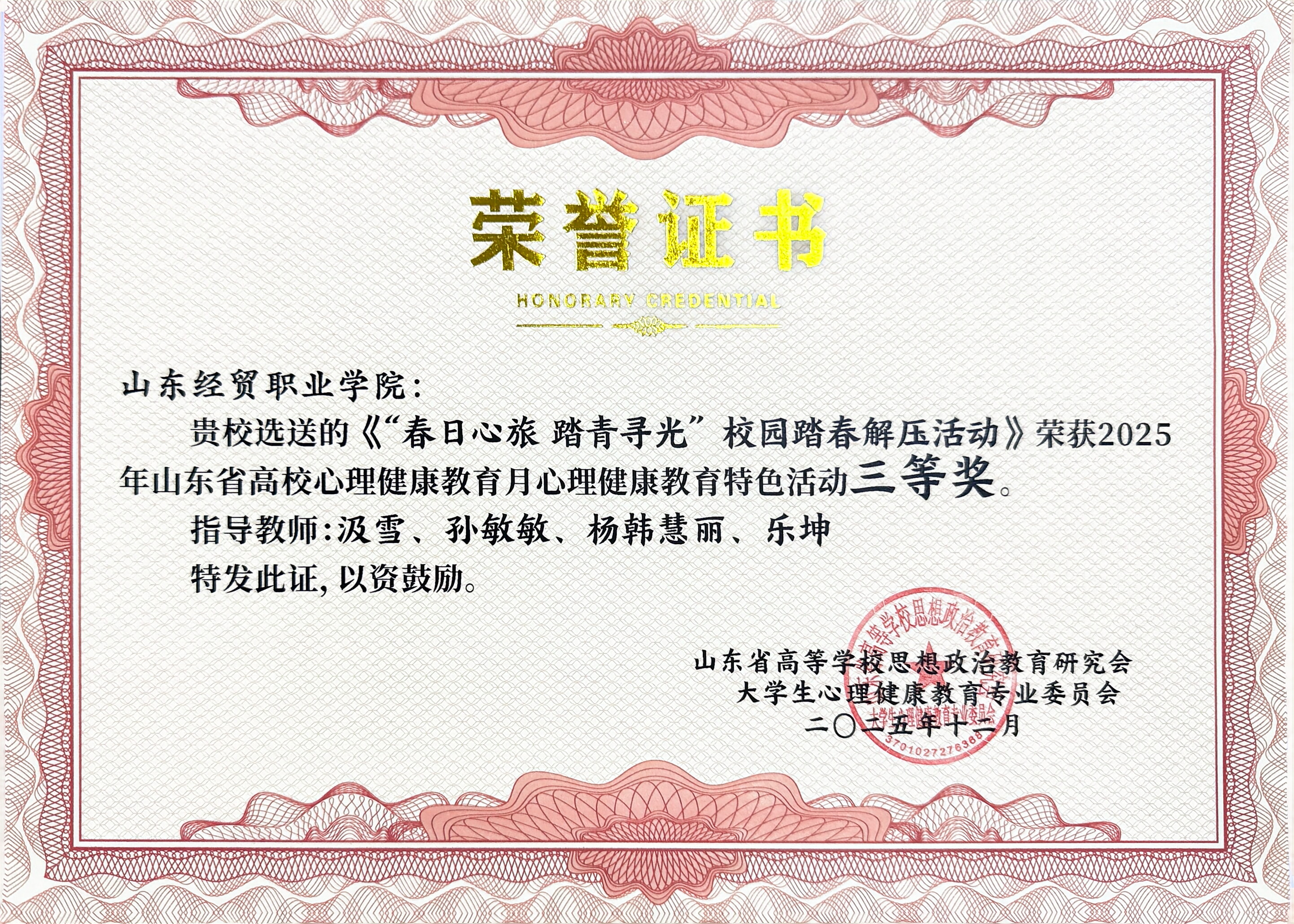荣誉的取得,是学院长期重视学生心理健康教育工作、持续推进心理育人体系建设的集中体现。下一步,学院将进一步深化心理健康教育内涵建设,创新活动载体与服务模式,持续为学生健康成长筑牢心理防线,着力营造更加温暖包容、积极向上的校园心理文化生态。