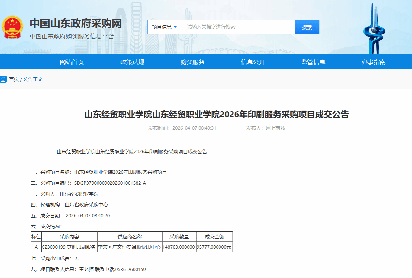 2026年印刷服务采购项目成交公告