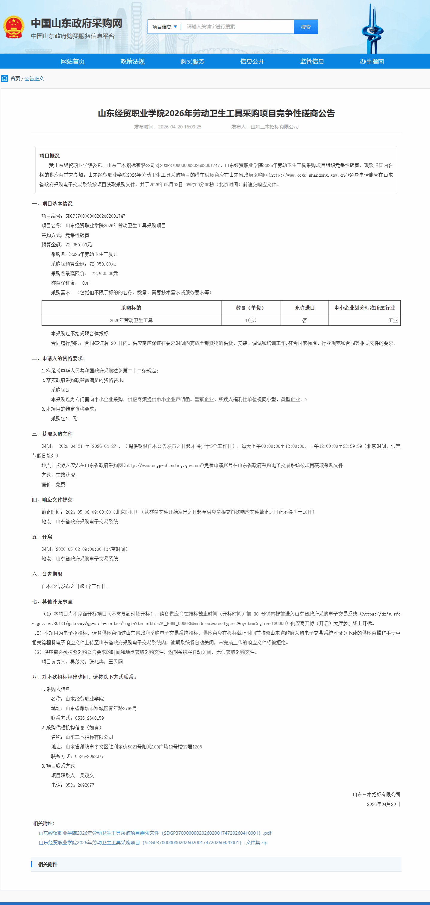 - 附件【20260420 2026年劳动卫生工具采购项目竞争性磋商文件集.zip】已下载次
