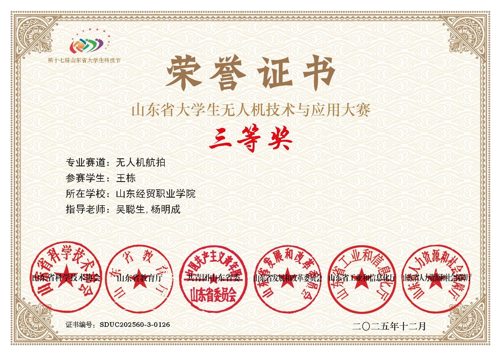 近日,第十七届山东省大学生科技节无人机技术与应用大赛无人机航拍赛道在山东大学威海校区开赛,学院无人机应用技术专业负责人徐伟带领学生刘明轩、王栋、赵士坦、何基铜首次参加该赛事,取得四项三等奖的优秀成绩。
