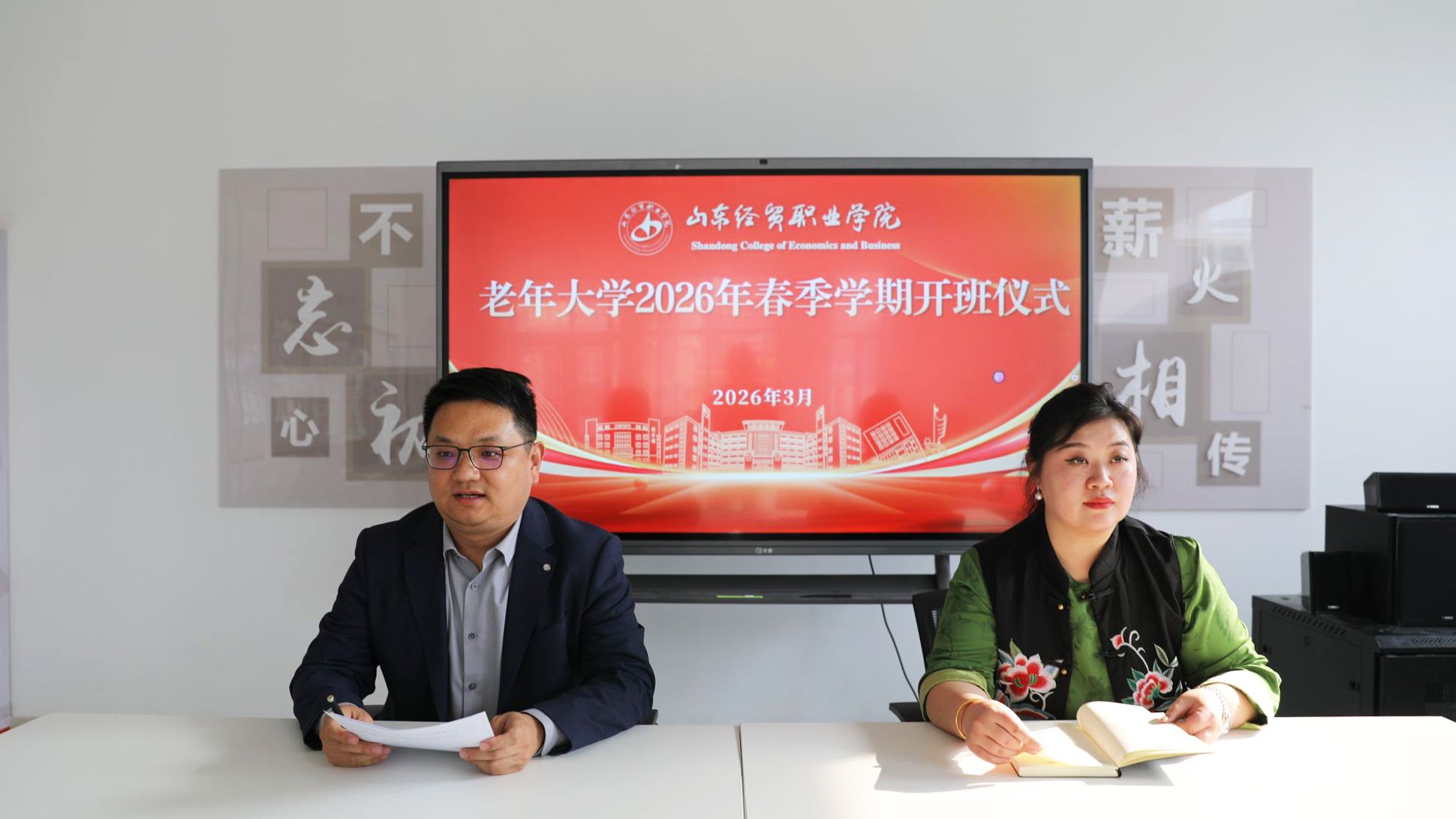 近日,学院老年大学2026年春季学期开班仪式在学院老干部活动中心举行。学院工会主席王磊、智慧健康养老服务与管理专业负责人李晓丹、老年大学学员代表共同参加了活动。这标志着学院在服务离退休教职工、推动老年教育事业高质量发展方面迈出了坚实一步。