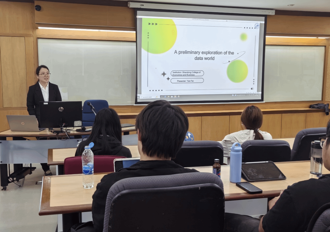 在泰国商会大学,闫菲为泰方60名师生开展了两场《Introduction to Big Data》专题讲座,系统阐释大数据概念、技术关联与基础应用;崔竹青博士则开讲《Corporate Internal Control》课程首课,为学院课程资源的国际化输出奠定了坚实基础。学院与泰国商会大学签订了合作框架协议,双方围绕国际化财经管理人才培养、联合开发《企业管理》课程标准等议题进行了深入交流。
