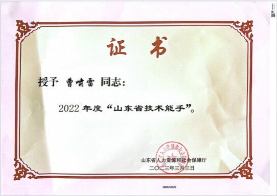在日常的教学工作之余,还担任电气自动化技术专业技能大赛的指导教师,指导学生参加了2022年全国行业职业技能竞赛,学生获得第一名,获得金牌指导教师称号;本人参加山东省“技能兴鲁”职业技能大赛,获职工组第2名一等奖;参加潍坊市职业技能竞赛获第一名一等奖,并获潍坊市技术能手荣誉称号,同时还获得潍坊高新区首席技师荣誉称号。2023年,获“山东省技术能手”荣誉称号。2024年,获“山东省技术技能大师”荣誉称号。