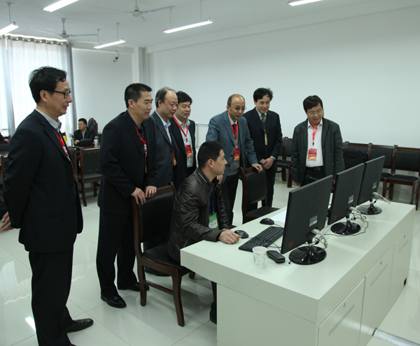 在听取了学院党委书记鲁庆波、院长冷韶华的工作汇报之后,徐督学一行首先来到学院实训楼赛场巡视了正在进行中的会计核算项目比赛赛况,并查看了下午比赛使用的电子沙盘对抗赛场。之后,徐督学到我院实训楼的教学设施、环境以及学院校企合作实训基地——丰华超市、会计学院实训室等进行了实地查看。